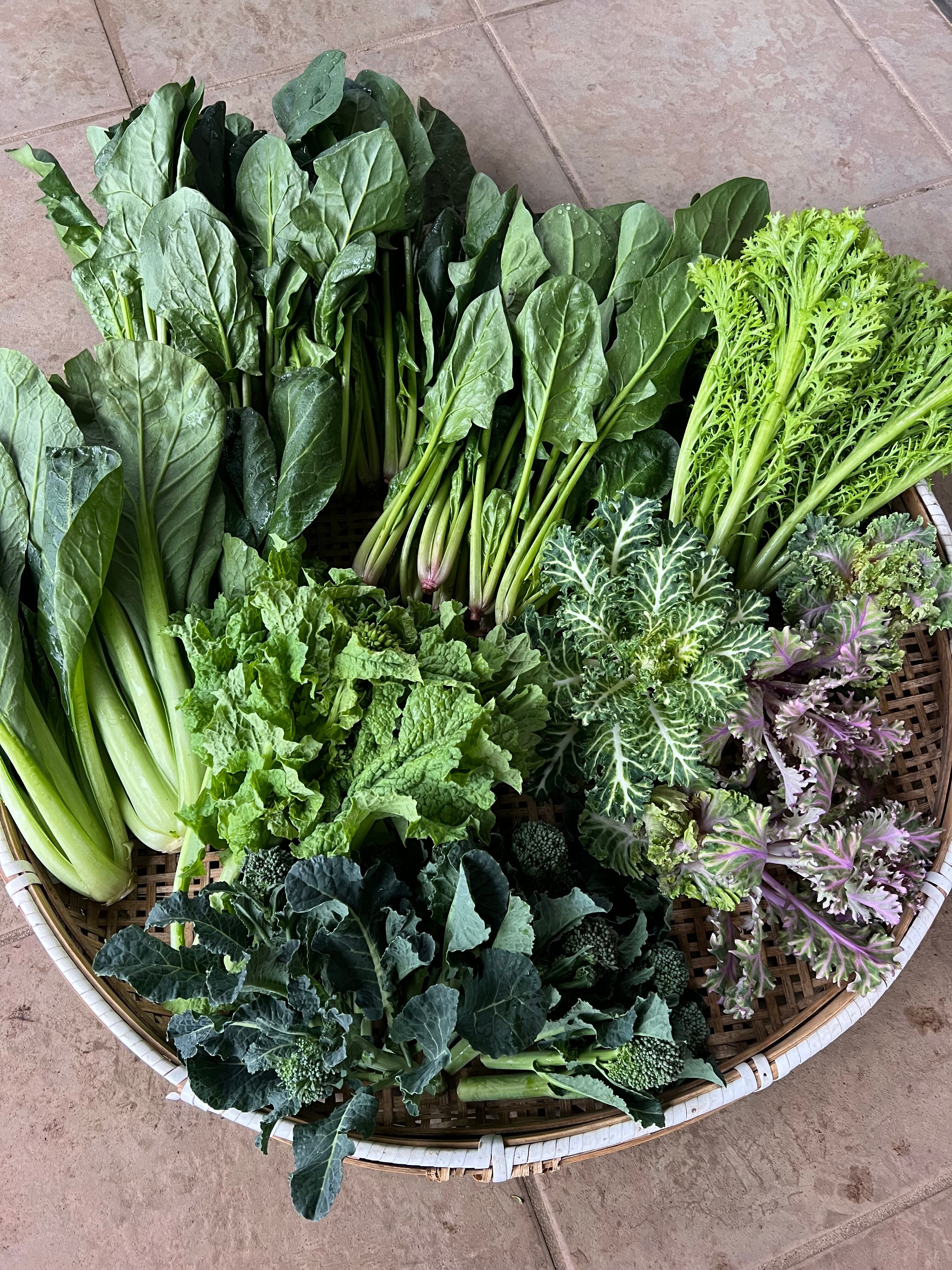 秋から栽培し、越冬して栄養をたっぷり蓄えた冬の葉物野菜ですが、先日の暖かさで急成長し規格外となりました。